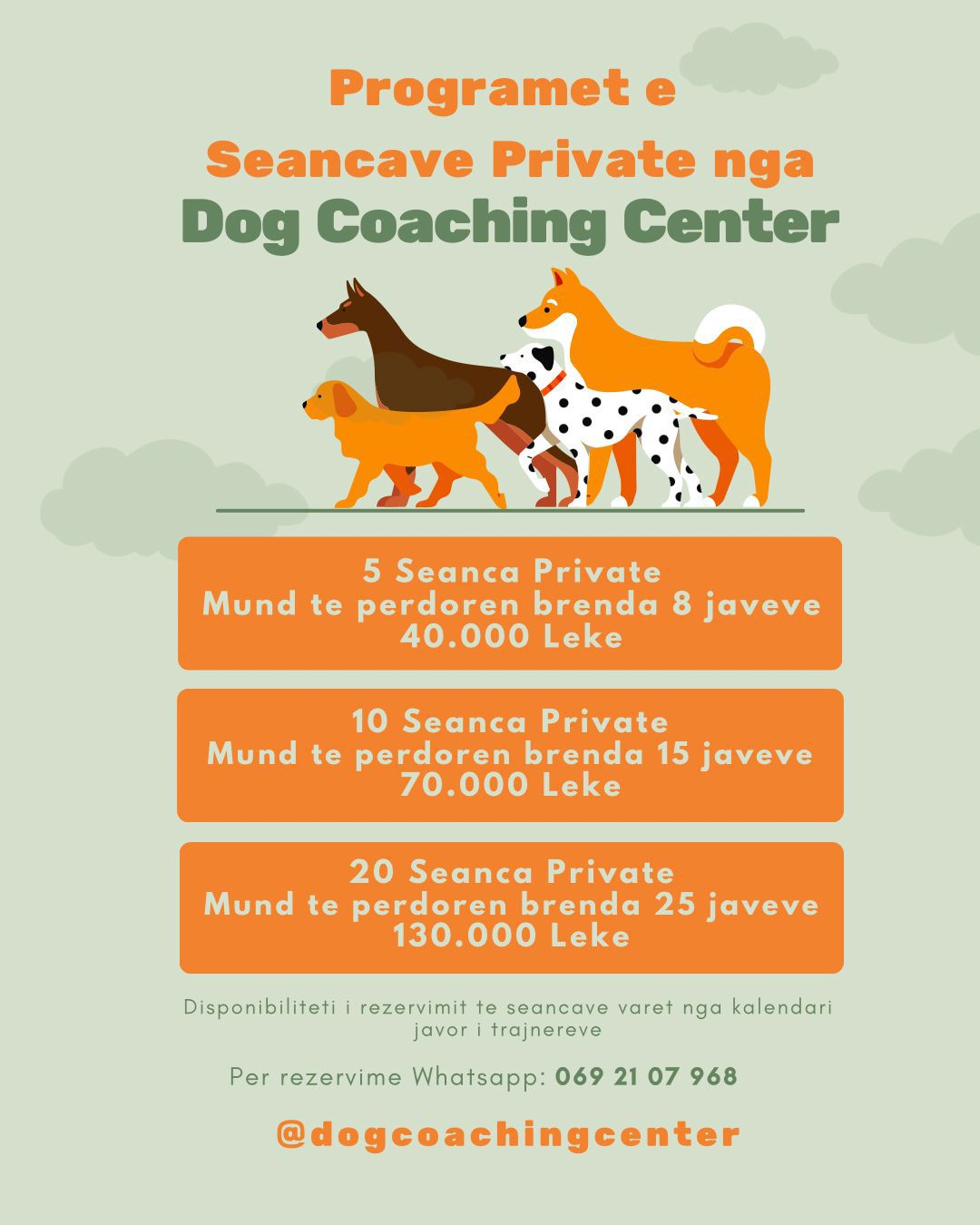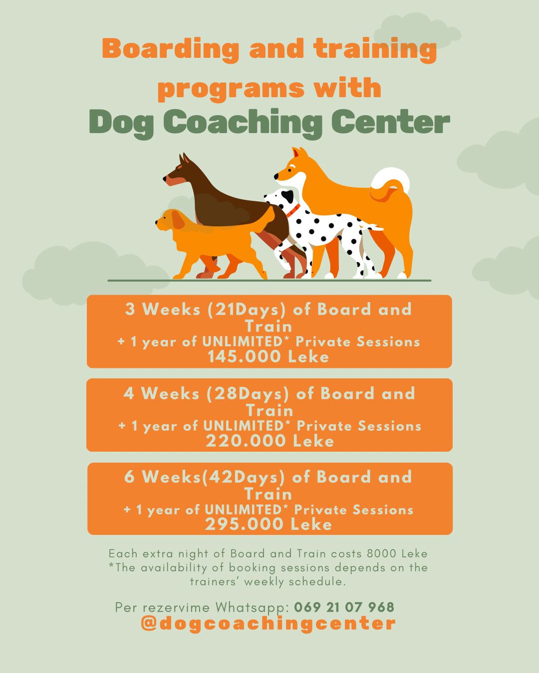 Miresevini në Dog Coaching Center, ku ofrojmë një gamë të gjerë të shërbimeve të përshtatura për të përmbushur nevojat unike të çdo qeni dhe pronarit të tyre. Ne jemi një qendër që ofrojme trajnime profesionale për të përmirësuar sjelljen dhe marredhenien me qenin tuaj në një mjedis të sigurt dhe stimulues për të gjatë largimit tuaj. Ambjentet tona te hotelerise ofrojnë akomodime luksoze për qenushët tuaj gjatë udhëtimeve jashtë qyteti, nën kujdesin tonë.
